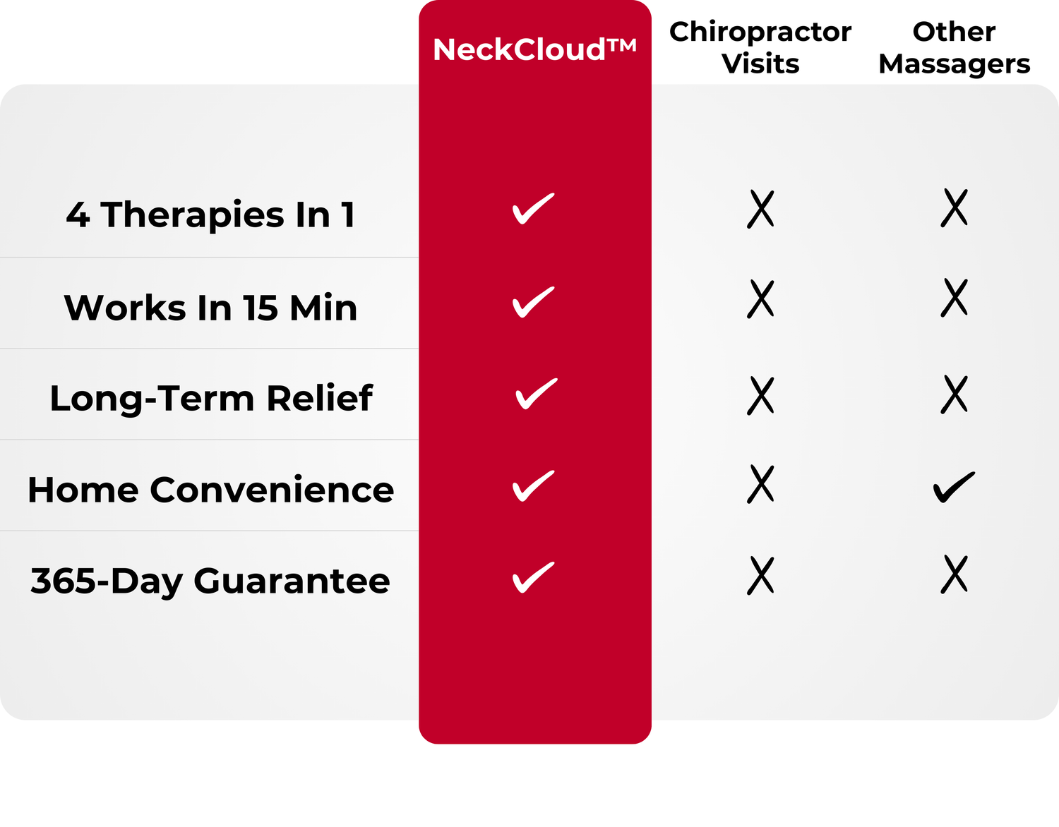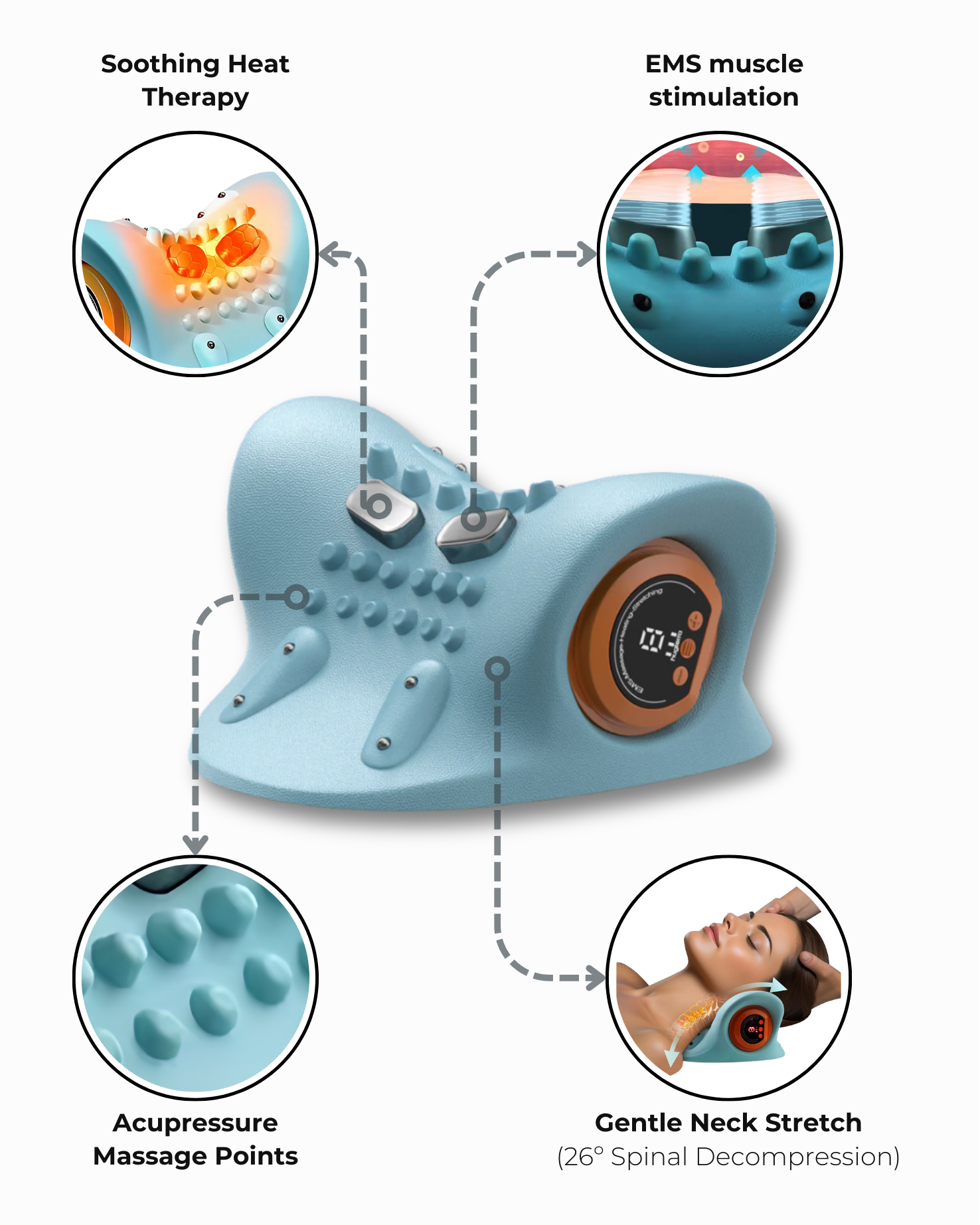 The NeckCloud™ Pro targets the root cause — not just the symptoms — using four proven therapies trusted by physiotherapists: